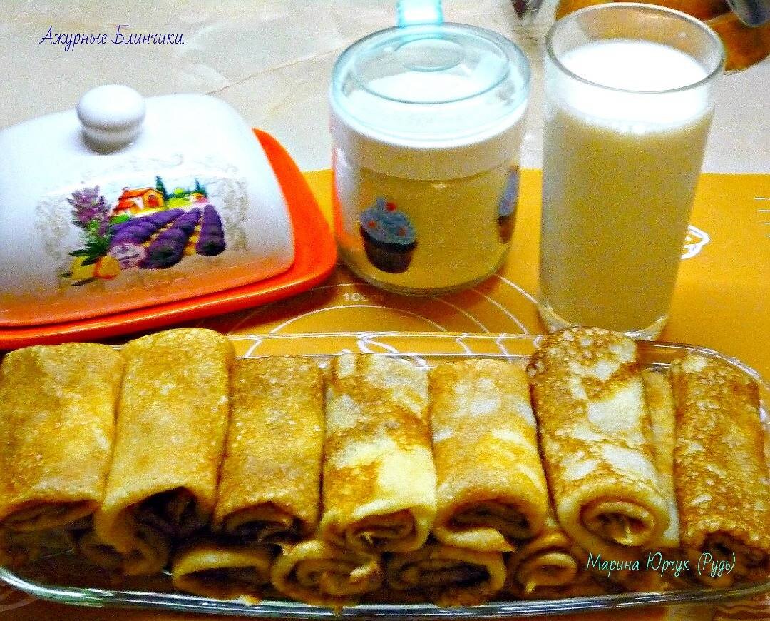 #масленица Нежные, мягкие, красивые и вкусные блинчики к чаю! Такие блины подойдут не только в качестве выпечки к чаепитию в кругу семьи, но в качестве основы для закусок, их удобно фаршировать сладкими и несладкими начинками. Ингредиенты: - кефира (простокваши), - воды, - муки, - яйца, - сахара (если будете делать с несладкой начинкой, то сахар можно уменьшить), - подсолнечного масла, - соли, - соды Способ приготовления: Готовятся эти блинчики очень просто и быстро. Продукты идут простые. Размешаем яйца, сахар и соль. Можно это делать просто венчиком. Размешиваем до полного растворения соли и сахара. Добавляем кефир. Размешиваем. Пока мы все это готовим, ставим нашу воду на огонь. Так как это тесто заварное, вода должна у нас закипеть. После того, как мы кефир с яйцами размешали, добавляем частями просеянную муку. Хорошо все перемешиваем, чтобы не было комочков. Вода у нас за это время закипела, и мы в нее добавляем соду, через сито. Обязательно соду надо добавлять в кипяток! Соду раз