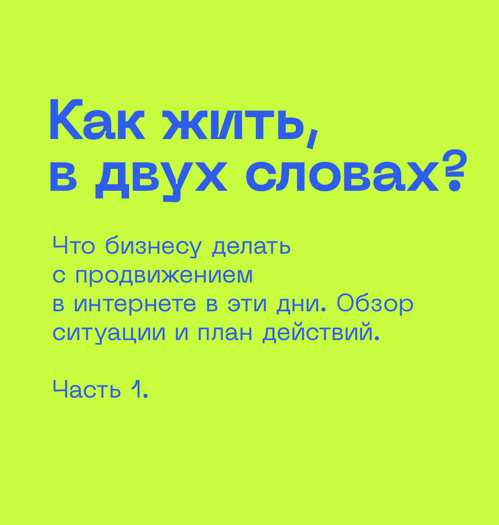 Что бизнесу делать с продвижением в интернете в эти дни. Обзор ситуации и план действий в двух словах. Итак, мы начинаем серию публикаций в попытках разобраться, что сейчас происходит в индустрии и как бизнесам нужно подстроить коммуникацию под реалии сегодняшнего дня. В двух словах, конечно! Что происходит сейчас, на момент публикации. В первой публикации поговорим о соцсетях и таргете. Фейсбук, Инстаграм, Твиттер и ТикТок почти не работают без VPN («благодарим» Роскомнадзор за защиту нас от вредной и недостоверной информации!). Рекламный кабинет Фейсбука не принимает оплату за таргет с карт подсанкционных банков. Сейчас есть обходные пути, но либо их скоро прикроет сам FB, либо постарается тот же РКН. Интеграции с блогерами и публикация развлекательного контента приостановлена по этическим причинам — и мы с этим согласны. Ниже напишем, что лучше делать вместо этого. Аудитория идет в телеграм-каналы и в другие соцсети. Это будет продолжаться, так как сейчас получить доступ к Инстаграм