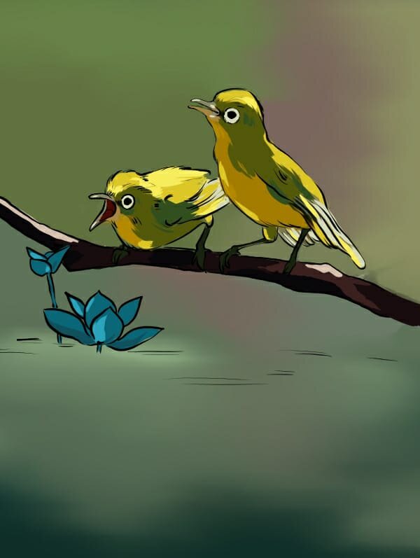 На одном дереве сидели две птицы. Одна устроилась на верхней ветке, другая – на нижней. Та, что сидела наверху, спокойно, созерцала мир. В её золотых перьях отражалось солнце, сияя вокруг птицы величественным ореолом.
