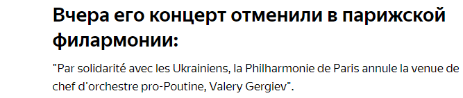 Спорт/культура с российским участием, похоже, идут под нож в мире. Гергиеву предложили в Мюнхене высказаться "о войне и мире", он не смог выдавить из себя нужных слов и был уволен с должности руководителя местного симфонического оркестра. До этого Карнеги-холл аннулировал концерты Гергиева с Мацуевым. Очень надеюсь, что они надолго потеряют свои западные ангажементы. Со спортом - понятно, что из всех крупных соревнований спортсменов из России и Беларуси выкинут, это неизбежно. Но вот интересный кейс. FIDE (Дворкович) осудила военные действия, перенесла спортивные соревнования из России (в частности, всемирную шахматную олимпиаду), передала в комиссию по этике вопрос о милитаристских высказываниях известных шахматистов-путинистов Карякина и Шипова, запретила российским и беларуским шахматистам выступления под флагами своих стран и исполнение гимнов - но сохранила их участие в соревнованиях. То есть Дворкович как бы выступил солидарно со всем миром - но при этом на стороне спортсмено