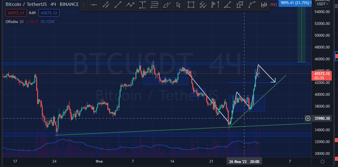 Горячо приветствую вас дорогие друзья, хочу рассказать вам о текущей ситуации все будет кратко) Ведь все мы знаем что биткоин ходит интересно иногда даже не предсказуемо) Думаю будет понижение до 42.000$. Потом повышение до 56.000$. Почему скажите вы ?. Ответ прост - жду отката после повышения на процентов от восходящего. А дальше двойнное дно и поджатие и минимумы тоже. Не финансовый совет, удачи вам. И мирного неба над головой )