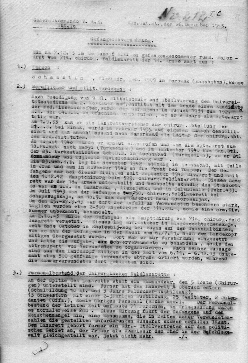 1. майор Шастин Владимир Иннокентьевич 30.05.1909. Майор медслужбы.