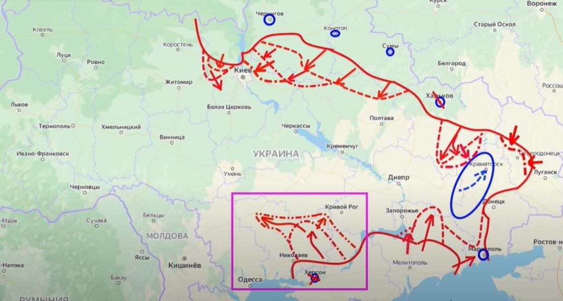 3. В этом отношении примечательна операция, которую со вчерашнего вечера начали проводить российские войска на юго-западе Украины. Заблокировав Херсон и охватив Николаев с востока военные колонны, не встречая сопротивления, двинулись в сторону Кривого Рога и к северу Николаевской области с перспективой отсечения Одессы от остальной части Украины и выходу к Приднестровью или границы с Молдавией. В случае успеха это будет означать окончательное обрушение южного фаса украинской обороны и потерю Киевом любого выхода к морям. Динамика пока позитивная.