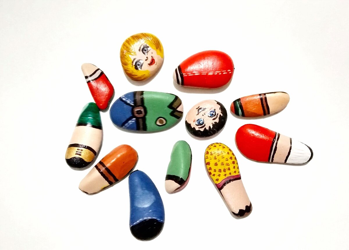 Роспись камней набирает популярность. Я тоже люблю этот бюджетный вид творчества. Особенно приятно рисовать на гладких морских камушках с плотной фактурой, например гальке. Я люблю функциональные вещи, пусть даже из разряда "поделки". Поэтому я не просто расписала камушки, а сделала развивающий пазл для ребёнка. Из 12 камушков можно собрать 4 разных образа. Очень увлекательно и занимательно, не только для детей, но и взрослых. Вот несколько простых шагов, кто хочет попробовать порисовать на камнях: 1. Камушки необходимо хорошо вымыть и просушить. 2. Предварительно нанести слой грунтовки из клей ПВА+ вода в пропорции 1:1. 3. Для росписи используйте акриловые краски. 4. В конце покройте лаком для придания красивого блеска. Обязательно попробуйте!