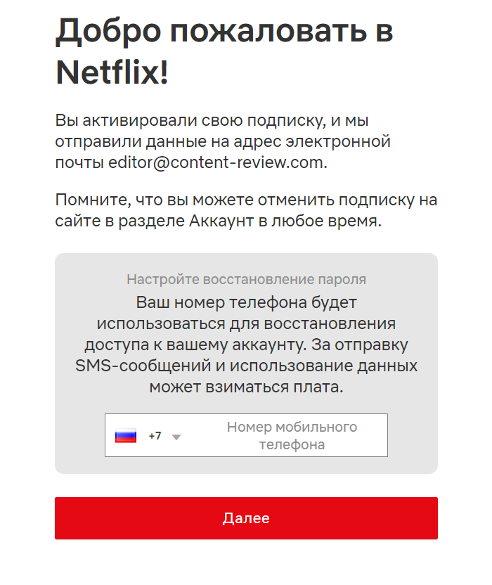 Платежи в пользу Netflix начали восстанавливаться. Чтобы проверить эту информацию, мы оформили подписку (базовую) с оплатой по карте Альфа-Банка.