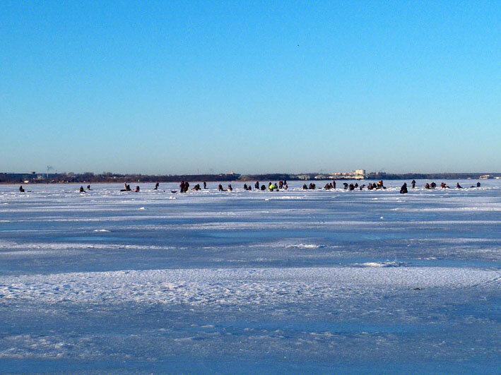Неудачная попытка одновременной ловли судака и чехони На вчерашний день синоптики пообещали прогноз из серии: «погода для рыбака, а не для рыбы». Но, у меня не было особого выбора, куда и за какой рыбой поехать. Во-первых, свободного времени было всего пол дня, во-вторых - дома закончилась вяленая рыба. Даже для просмотра футбольного матча в понедельник вечером пришлось рыбца к пиву покупать в магазине. Позор на мои седые волосы! :) В общем, решил выбраться на Финский залив, проверить активность чехони. Впрочем, в тех же краях может присутствовать и судак, и мне еще очень захотелось злых поклёвок, что называется – «отдай удочку!». В итоге, на льду был во всеоружии, решив применить тактику одновременного лова двух разных видов рыб. Сверлил луночку под судака на глубинах около 8 метров, если в эхолоте присутствовала рыба в пол воды, то рядышком делал еще одну, куда ставил удочку на чехонь. Предполагалось, что если в каком-то месте будут поклевки рыбы-сабельки, выставлю на неё еще удочки.