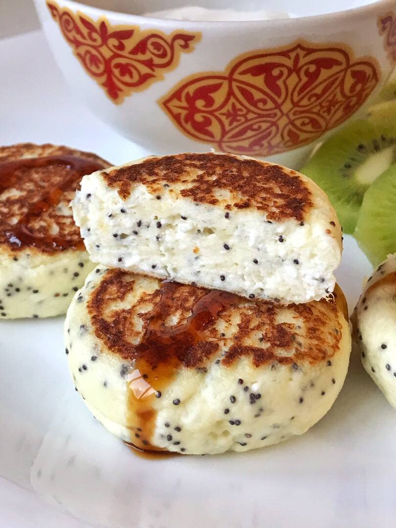 🌍 КБЖУ на всю порцию: 410/42.8/17.7/20.7 Я разделила на 2 порции. Добавила 100 гр йогурта и 100 гр киви. Завтрак получился на 325 ккал 👍🏻 ❤️ Если не заморачиваетесь с подсчётом калорий или хотите приготовить на всю семью, то берите целое яйцо, целую упаковку Рикотты и 2 пачки творога, муки 40-50 гр соответственно. 😘 Обязательно попробуйте. Это оочень нежные и вкуснючие сырники! 🔥 Ингредиенты: яйца (20 гр), творога 2%, Рикотта Лайт, муки из ТСП (твёрдых сортов пшеницы) или любой другой, Соль/подсластитель , мака по желанию Способ приготовления: Яйцо взбить вилкой с солью и подсластителем. Добавить творог и рикотту, хорошенько перемешать. Добавить муку, тщательно перемешать и дать постоять минут десять. Мокрыми руками сформировать шайбочки и обжарить на сковородке под крышкой.