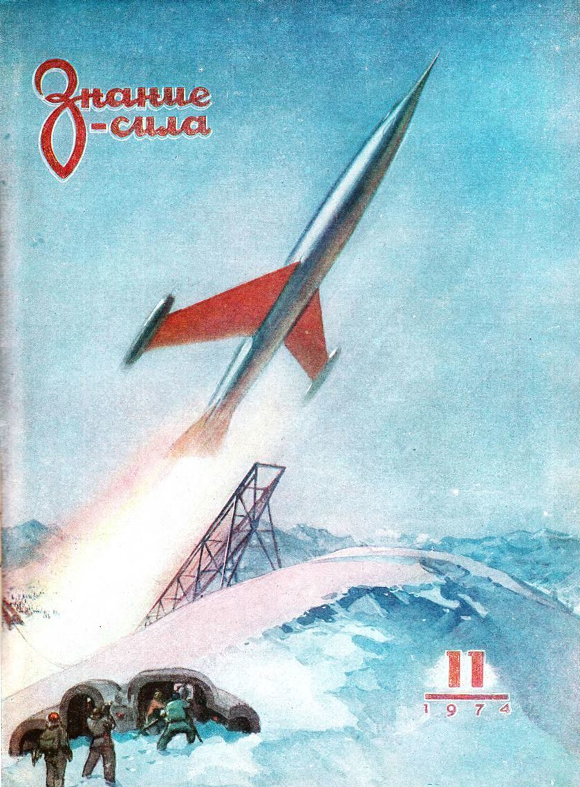 "Знание — сила" №10 1954 год — не обычный выпуск журнала, а научно-фантастический. В нем напечатан… ноябрьский номер за 1974 года. В нем освещается полет межпланетного корабля “Луна-1”, который стартовал на Луну 25 ноября в 10 часов 00 минут. Репортаж ведется от имени специалистов и ученых буквально по минутам. Давайте узнаем, как представляли межпланетный корабль люди почти 70 лет назад. На “Луне-1” установлен атомно-реактивный двигатель, масса и габариты которого усилиями ученых были значительно уменьшены. Он весит всего несколько тонн и имеет диаметр порядка 1,5 м. В реактор подается соль урана-325, которая хранится в безопасных баках. В ходе цепной реакции достигается температура около 4000 градусов Цельсия. В конструкции используются новые жаропрочные сплавы, которые способны работать в таких условиях. Высокая температура в реакторе необходима для нагрева рабочего вещества — воды. Она распадается на водород и кислород, которые устремляются из сопла со скоростью примерно 10 км/с.