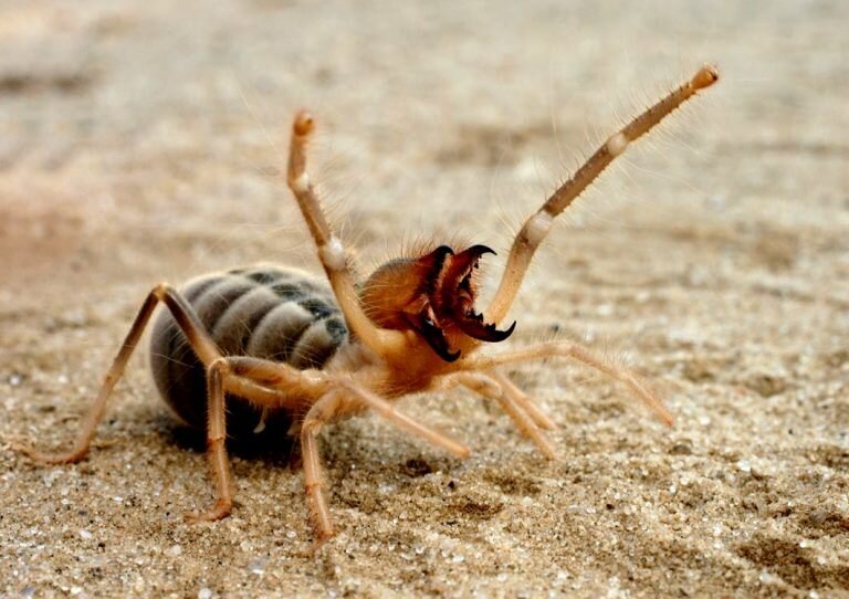Фаланга относится к классу паукообразных. Но в чистом виде пауком ее назвать нельзя, так как от классического паука ее отличает строение тела, состоящее из трех частей: головы, груди, брюшка. У пауков – две части: головогрудь и брюшко, они являются хищниками, как и фаланга. У нее много названий, в зависимости от ареала обитания: верблюжий паук, биохорка, ветряной скорпион, солнечный паук. Это существо принадлежит к отряду сольпуги. В переводе с латинского это означает «убегающий от солнца». Это же слово стало еще одним названием этого паукообразного. Сольпуги действительно ведут ночной образ жизни, предпочитая охотиться после захода солнца. Но в темноте они, скорее, побегут на свет, чтобы там найти свою добычу, например, насекомых.