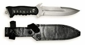 Экспериментальная модель универсального ножа для морской пехоты. Создание универсальных ножей всегда привлекало конструкторов, разрабатывающих новые модели холодного оружия, но решение широкого круга задач при помощи одного инструмента – вещь практически невыполнимая. Нож «Шторм» имеет клинок из нержавеющей стали и ударопрочную, химически инертную рукоять, вследствие чего вполне может использоваться для ближнего боя подразделениями морской пехоты, для которых он, собственно, и разрабатывался. Нож чисто боевой – из-за отсутствия пилы на обухе и серрейтора на лезвии он вряд ли может рассматриваться как универсальный.