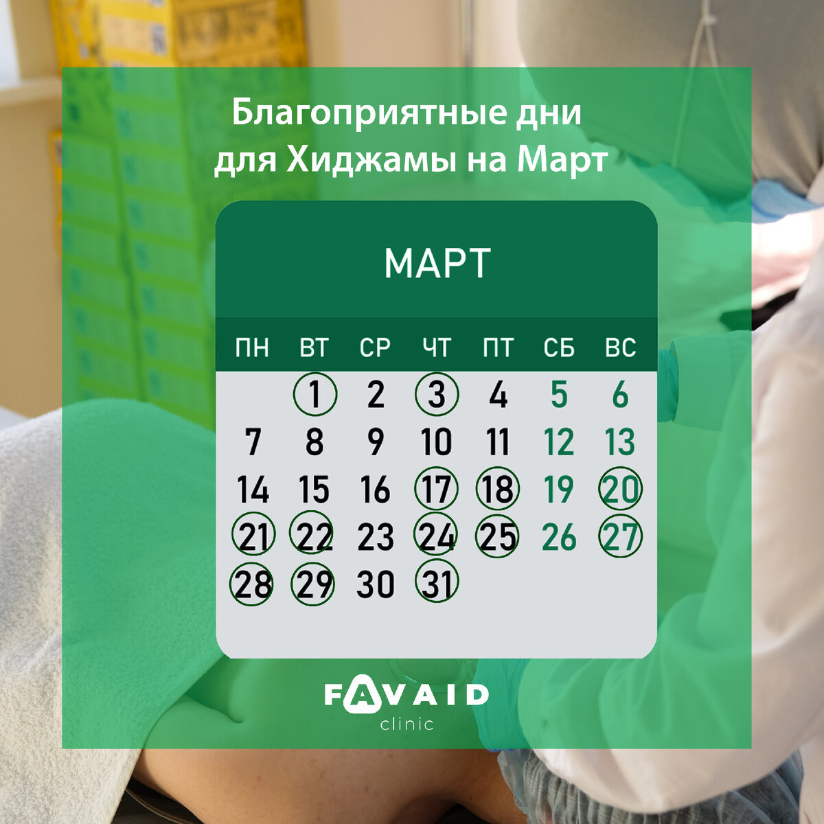 Тут у нас благоприятные дни для хиджамы на Март 🌱