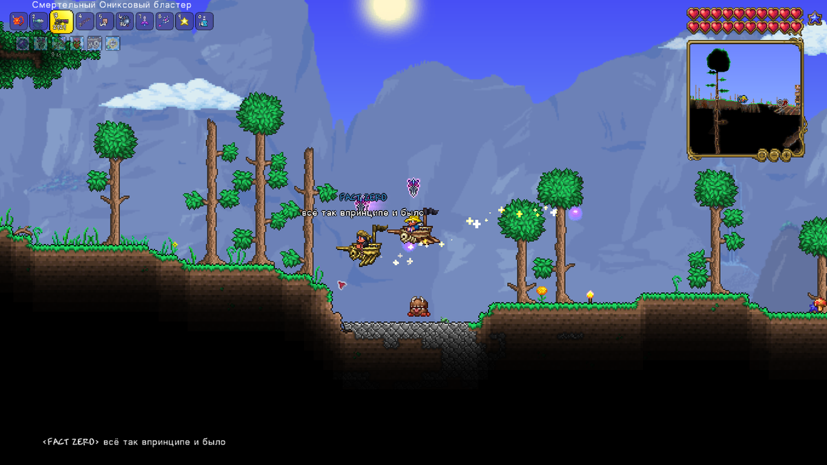 На этот раз бой был потным, но имел отличный финал! Мы победили этого прайма) И я даже успел тактику свою создать, просто лететь вверх, а скелетрон летит за тобой, а ты кидаешь в него стрелы с помощью лука Дедала, нереальный дамаг и 100% уворот. Правда, надо будет как то упасть и после опять начать лететь, а это уже проблема.