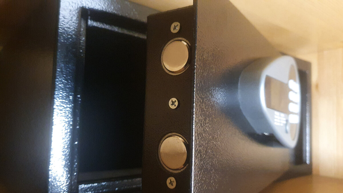 Кнопочная панель, инструкция из двух предложений, и фиксация сейфа на своем месте. По месту такой сейф прикручен двумя тремя саморезами. Лозунг что администрация гостиницы не несет ответственности за сохранность ваших сокровищ, И в то же время вы уведите всегда крупными буквами в правилах.