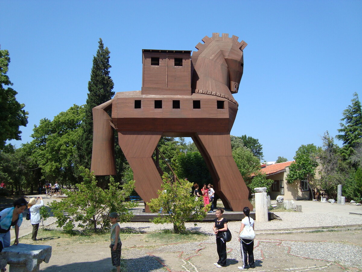 А между тем, конь добрался до Трои быстрее нас! Кстати, Троя звалась вообще-то Илионом, но по аналогии с подчиненной ей территорией Троадой ее именовали и Троей, в основном греки. Поэтому в гомеровской «Илиаде» мы находим оба топонима.