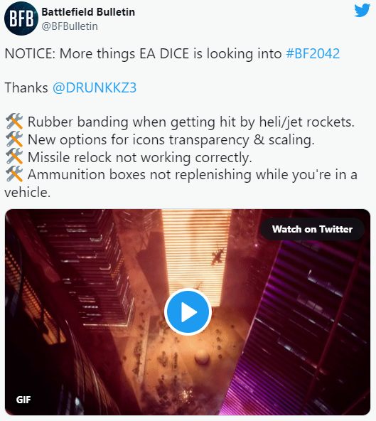 В то время как Battlefield 2042 получает неоднозначные отзывы и критику со стороны сообщества, также стала жертвой ряда ошибок и технических проблем. К счастью, игрокам не придется долго сталкиваться хотя бы с некоторыми из этих ошибок, поскольку, как утверждается, DICE их изучает. В сообщении из аккаунта фанатов в Твиттере Battlefield Bulletin утверждается, что DICE в настоящее время решает четыре проблемы, о которых сообщили игроки Battlefield 2042. Эти проблемы варьируются от резиновых полос игроков, когда они попадают в ракеты с самолета или вертолета, и неработающей перезарядки ракет до вариаций изменения прозрачности и размера различных значков.