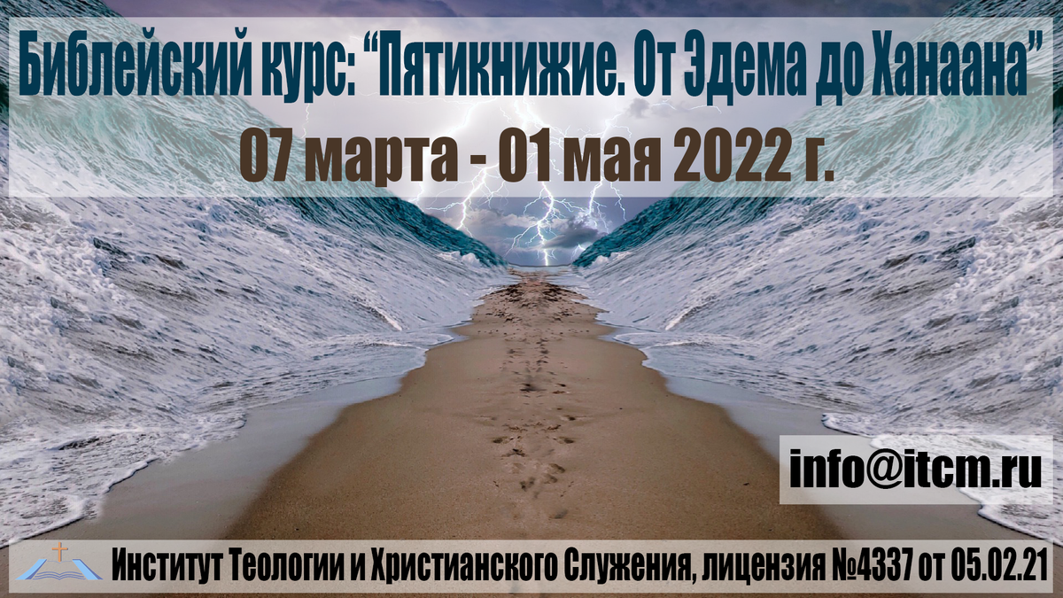 Институт Теологии и Христианского Служения приглашает вас на библейский курс "Пятикнижие. От Эдема до Ханаана", который представляет собой подробное изучение первых пяти книг Ветхого Завета (Бытие, Исход, Левит, Числа, Второзаконие). На курсе будут рассмотрены следующие темы: