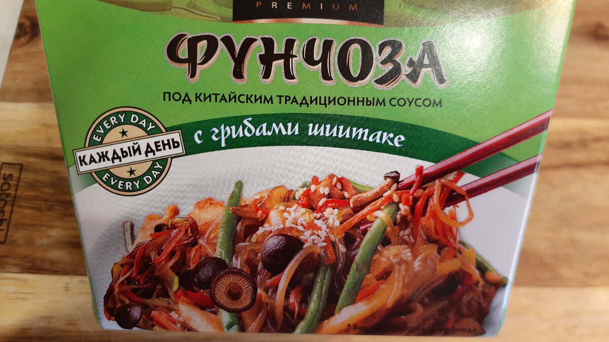 Здравствйте, друзья! Сегодня у нас на обзоре фунчоза «Sen Soy» с грибами шиитаке. Приобретался набор в магазине «Fix Price» по цене 85 рублей. Цена акционная. Без акции цена составляет 99 рублей. Приобрести фунчозу можно в гипермаркетах или на OZON, Wildberries и Яндекс.Маркет. Как мне показалось, количество фунчозы на полках не уменьшается, фунчоза лежит совершенно не востребованная. Приступаем к обзору. Давайте ознакомимся с составом фунчозы, он представлен на нижней части коробки. Так же на дне упаковке указан вес набора. Что интересно и не часто встречается, вес указан как нетто, так и брутто. Заявленный вес вместе с упаковкой 160 грамм. При взвешивании мы получили 168 грамм. Производитель не обманул. Способ приготовления предельно простой и указан на торцевой стороне упаковки. Просто добавь воды, как говорилось в одной рекламе. Теоретически такой формат позволяет взять фунчозу с собой в дорогу, но есть нюанс. В процессе приготовления необходимо слить лишнюю воду, что например в по
