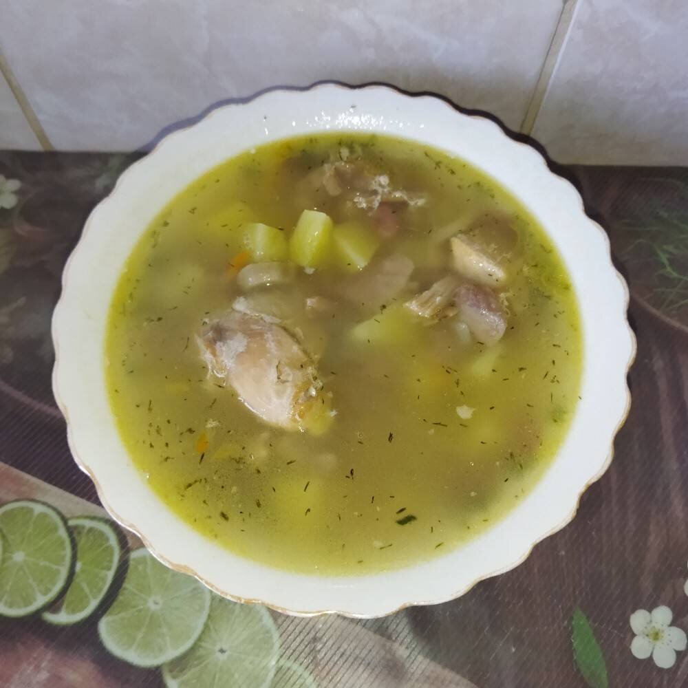 #игры Ингредиенты: Мясо курицы на косточке, Фасоль, средняя Луковица, средняя Морковь, Картофель, Грибы консервированные, Соль, чёрный молотый Перец, сухой Зелени, Бульона Способ приготовления: Приготовить ингредиенты. Курицу помыть, обсушить вискозной салфеткой, порубить на куски. Картофель помыть от грязи, почистить, разрезать на части. Приготовить другие ингредиенты. Фасоль (заранее перебрана, замочена 3 часа) у меня предварительно отварена и хранится в морозилке и я беру её по мере необходимости. Лук, морковь сполоснуть. Морковь натереть на крупной тёрке. Лук, грибы нарезать кубиками. Обжарить на раскаленной сковороде с маслом лук до появления запаха, добавить морковь, пожарить минут 5, помешивая, добавить грибы и обжаривать ещё минут 5. Предварительно сварить мясо курочки,залив холодной водой, до готовности (я варю в скороварке),процедить бульон, мясо курочки отделить от косточек. В кастрюлю с бульоном переложить мясо, поставить на огонь, как закипит, добавить нарезанный небольшим