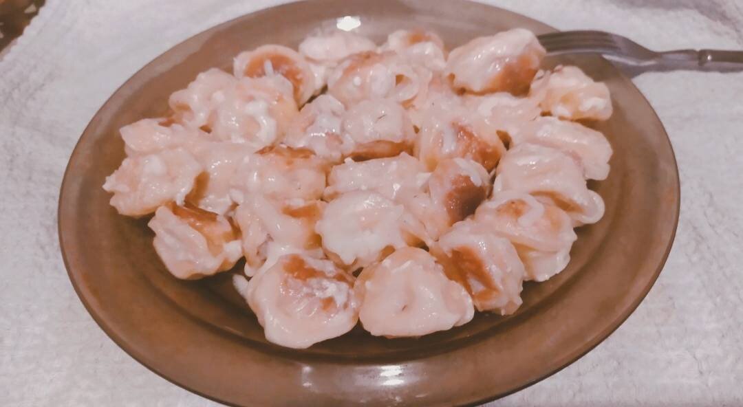 #меню По рецепту автора Анна Пыркова -> Амбассадор @anna_chichunova Ингредиенты: пельмени, сметана, сыр, куркума, Растительное масло для жарки, соль Способ приготовления: В сковороду налить растительное масло, засыпать пельмени. Пельмени каждую минуту перемешивать, чтобы пельмени покрылись корочкой. Добавить куркуму, соль (у меня нет в рецепте куркумы) я добавила только соль. Добавить сметану, налить воды, чтобы закрыть дно. Перемешать и под крышкой тушить, иногда перемешивая. Как будут пельмени готовы, посыпать натёртым сыром перемешать. Приятного 😋аппетита.