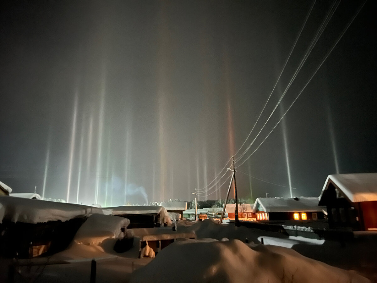 В этой деревне каждый день может случиться необычное природное явление. Так, в одно морозное утро, я встретил световой столб солнца.