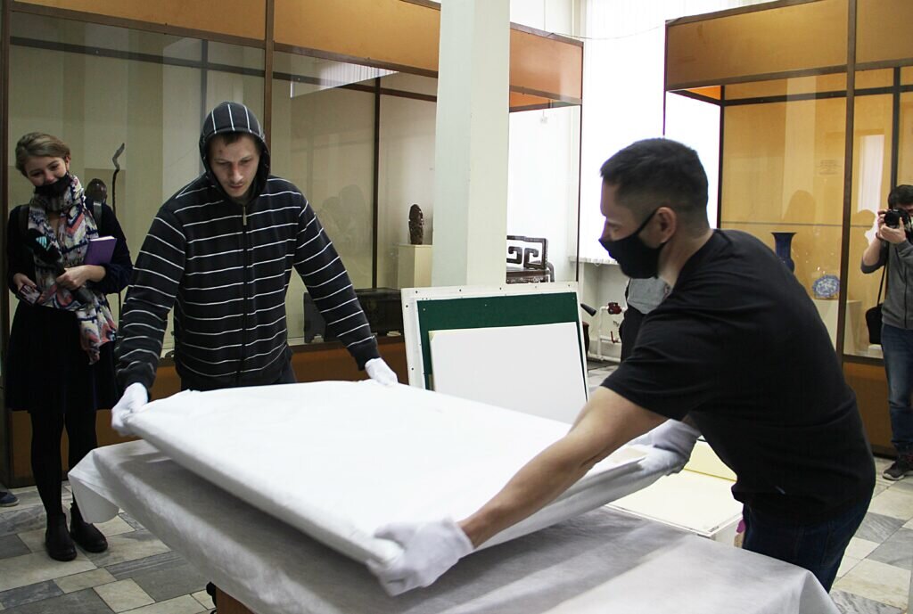 Картина Ильи Репина “Нищая” сегодня, 18 февраля, вернулась в Иркутск. Дома ее не было год, с февраля 2021 года она путешествовала по Европе. Картина картина экспонировалась в Хельсинки и Париже в рамках тура, организованного Государственной Третьяковской галереей. Привезли портрет в Иркутск вчера, 17 февраля. Сутки он находился в температурном карантине, во время которого ящик открывать нельзя. Сегодня его вскрыли и вернули картину в постоянную экспозицию Иркутского областного художественного музея. На месте присутствовала редактор “Иркутск Сегодня” Елена Печеницына. После того, как картину достали из походной упаковки, ее внимательно изучили сотрудники-реставраторы. При ярком свете музейного зала и все равно используя фонарь, обязательно в перчатках специалист обследовал каждый уголочек шедевра. К счастью, картину вернули в целости и сохранности. Как рассказали в музее, ее однажды уже реставрировали – это было в начале двухтысячных. Тогда полотно было уже в раме, но прибито к подрамни