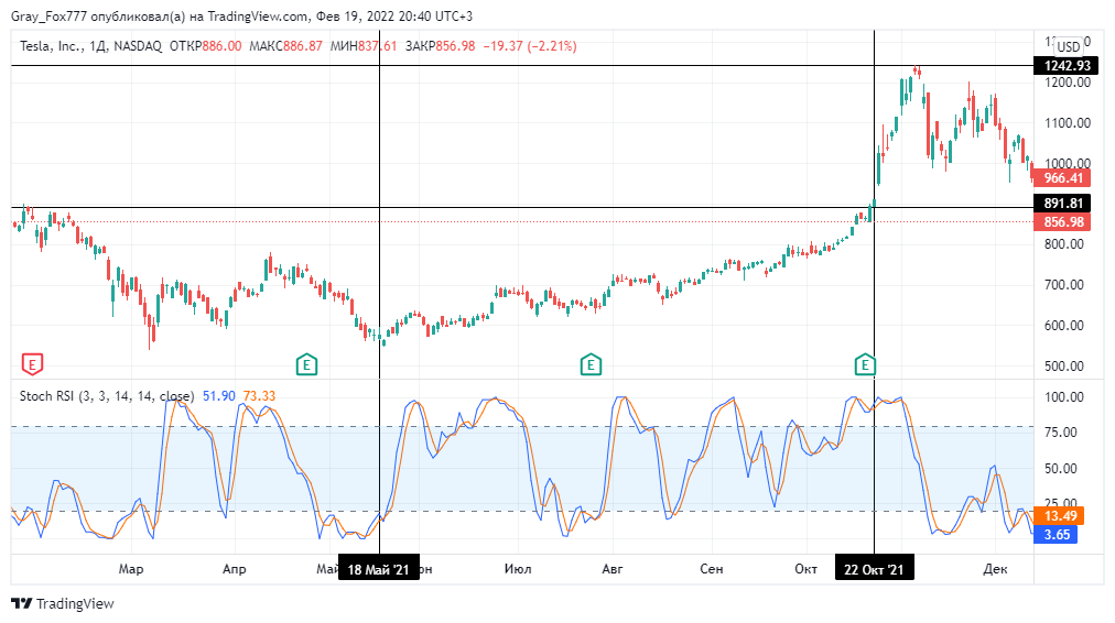 Покупая и продавая акции Теслы с 18 мая по 22 октября 2021 года лишь на основании показателей индикаторов – вы бы потеряли кучу денег на комиссионных, не понимая основ использования индикатора. Сразу перейдем к важному правилу насчет RSI.