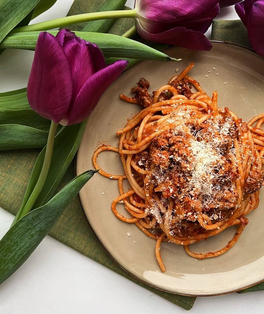 Болоньезе очень вкусный вариант приготовления пасты, но предполагает наличие таких продуктов как вино, сельдерей, морковь и прочее, что мне было недоступно. Я приготовила пасту из того, что было в наличии. По факту похоже просто на макароны по-флотски с томатной пастой. Выбирайте качественные макароны из твердых сортов пшеницы #паста #спагетти #макароны #италия #пармезан #феттучини #томат #сыр #быстровкусно #просто #сытно #февраль #итальянскаякухня Ингредиенты: спагетти, томатный соус, свино-говяжьего фарша, маленькая луковица, соль, перец молотый, растительное масло , молотый сушеный чеснок Способ приготовления: Очистите луковицу, нарежьте мелким кубиком и обжарьте на растительном масле около 3 минут на сильном огне. Добавьте фарш и расщепите его на маленькие кусочки, обжаривайте на сильном огне до потемнения. Влейте томатный соус. Перемешайте и тушите на медленном огне около 7 минут, добавьте специи и соль. Макароны я отварила заранее и добавила к соусу. Необходимо смешать макароны и