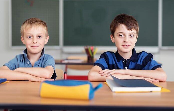 И первые уроки Сережа постоянно оглядывался на друга. А потом взял портфель и пересел к нему.
