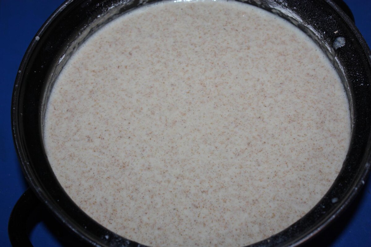 Первым делом надо разбродить дрожжи. В теплое молоко или сыворотку нисыпьте дрожжи и оставьте на 10 минут.