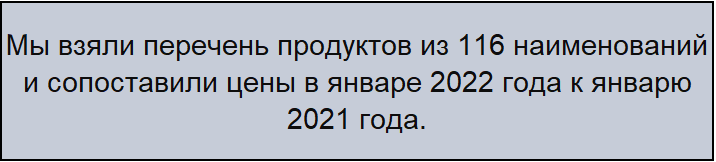 Оценить рост цен только на продукты питания легко. Росстат представляет полный перечень продуктов, по которому производится расчёт инфляции в стране.