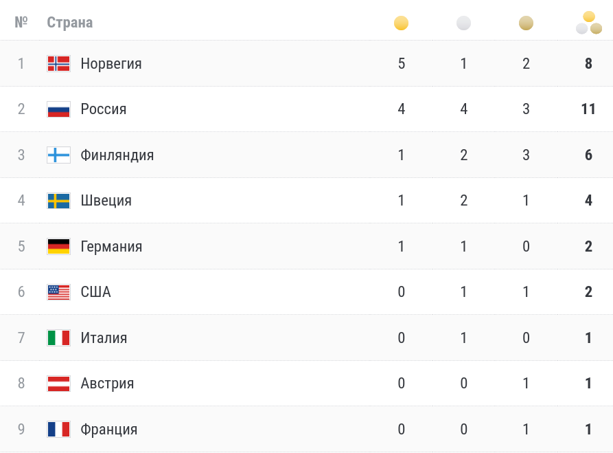 Ну, что вот и завершился важнейший старт четырехлетия для наших лыжников. Выступили супер достойно - на 5, может даже с плюсом. Самым лучшим по результатам среди всех на лыжном стадионе стал Александр Большунов аж с пятью медалями, что лучше чем у Терезы Йохауг только с тремя золотыми. Олимпиада-2022. Пекин Лыжные гонки. Общий медальный зачёт Обидно, конечно, что в последний день упустили общемедальное первенство, но объективно с такими кадрами как Тереза Йохауг и Йоханнес Клэбо сложно было бороться за высшие награды. Да, и зачёт неофициальный так, что переживём! МУЖЧИНЫ. УЧАСТИЕ. МЕДАЛИ Все заявленные российские лыжники получили шанс на свою гонку, где-то может даже в ущерб чьих-то интересов. Но как показали итоги каждой отдельно взятой гонки, то всё было по делу. 5 - Большунов🥇🥇🥇🥈🥉