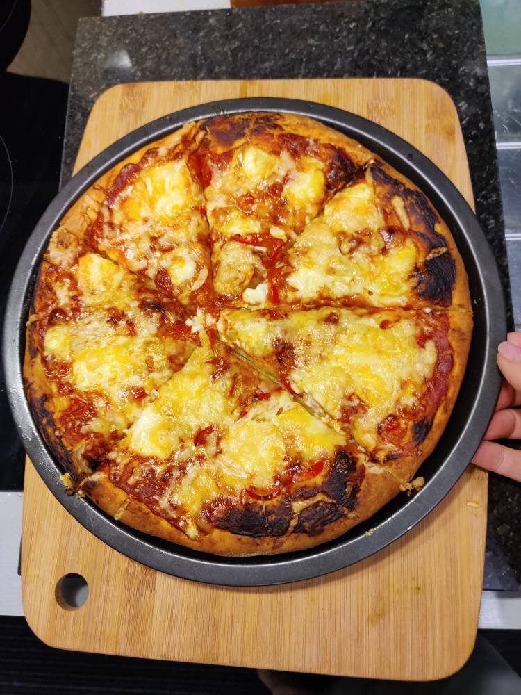 Пицца три сыра всегда получается вкусно .Козий сыр в смешивании с сыром лердамер и эменталь,в результате очень нежный на вкус #французкаякухня #итальянскаякухня #пицца Ингредиенты: Теста дрожевого, Томатная паста, Сыр козий, Сыр эменталь , Сыр лердамер, Болгарский перец Способ приготовления: Тесто можно готовое или приготовить по моему рецепту, смотри в перечне рецептов. Тесто раскатать и выложить на смазанный подсолнечным маслом противень и отложить отдыхать минут 20. Натереть два сыра твердых и нарезать ломтиками козий. Намазать томатной пастой или соусом тесто выложить нарезанный болгарский перец, ломтики козьего сыра, посыпать смешанный твердый сыр. Все добавляем последовательно. Выпекать в разогретой духовке t 220, время 25 мин. Пиццу вынуть и нарезать. Приятного аппетита.