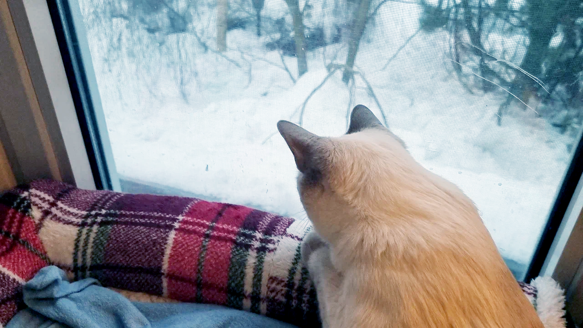 Вроде ещё зима не кончилась - февраль на дворе, а к Митяйке нашему друг прилетел - летний, комарообразный. Митя за ним минут 30 наблюдал, что-то ему рассказывал, подмуркивал, подмявкивал.
