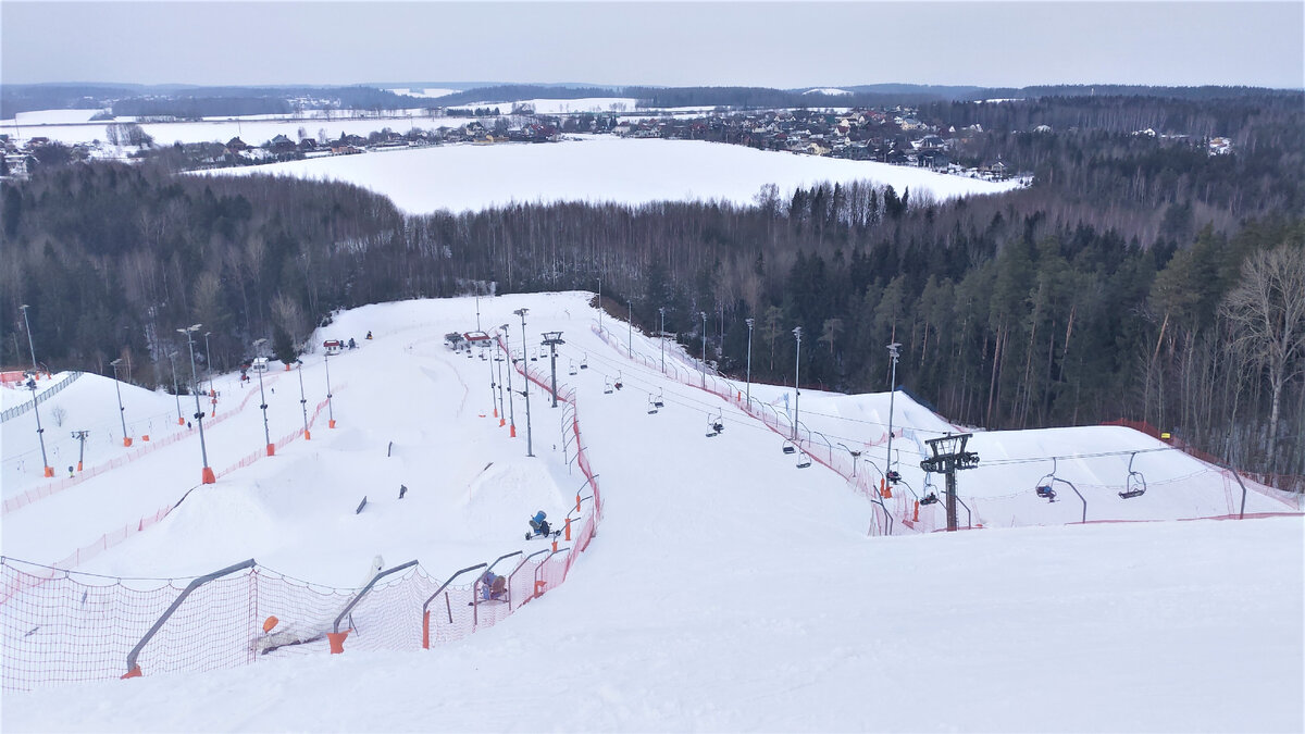 Этой зимой постоянно чередуются морозные и снежные периоды с глубокими и продолжительными оттепелями, когда практически полностью исчезает снежный покров. Вот и сейчас глядя на прогноз погоды на ближайшую неделю с дождями и температурами в 5-8 градусов выше ноля становится понятно, что надо срочно отправляться в горнолыжный центр и несколько часов посвятить катанию на горных лыжах в относительно нормальных зимних условиях. Возможно, что предстоящая оттепель это уже не совсем оттепель, а начало весны. Эта весна может стать затяжной и холодной, но возврата к снегам и морозам может уже и не случиться. Так уже бывало. Поэтому стоит воспользоваться последними зимними деньками и уделить время любимому зимнему виду отдыха. Вполне может случиться, что это катание будет одновременно и закрытием текущего зимнего горнолыжного сезона. В горнолыжный центр я попал буквально в последний день перед анонсированной оттепелью. Накануне был солнечный день с легким морозцем, а этот день был уже серым и п