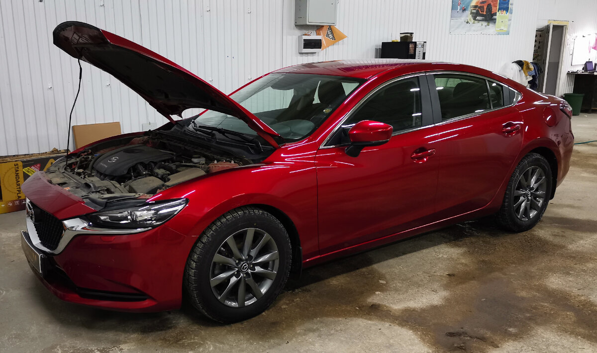 Красивый из седанов Mazda 6 прибыл к нам на шумоизоляцию с жалобами на высокий уровень шума в салоне, «пустые» и звонкие двери, некачественное звучание акустики и некоторые посторонние звуки в багажнике, а так же на хорошую слышимость мотора. Так как автомобиль используется для частых поездок всей семьей, владелец машины выбрал максимальный вариант шумоизоляции «Премиум»