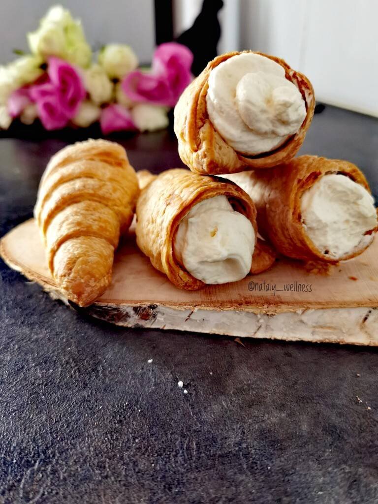 Слоёные трубочки с белковым кремом. Вкус детства. Оказывается, очень просто приготовить в домашних условиях. Особенно, когда под рукой есть готовое слоеное тесто. Начинка у трубочек может быть любая. И белковый крем, и крем-чиз, и на основе сливочного масла со сгущенкой, и даже просто густой джем. Вариации начинки ограничены только Вашей фантазией. #игры #слоёноетесто #кчаю Ингредиенты: готовое БЕЗДРОЖЖЕВОЕ слоеное тесто, Белковый заварной крем, белок, сахар, лимонного сока (можно сухую лимонную кислоту) Способ приготовления: Пластины слоеного теста слегка раскатываем, нарезаем на полоски длиной примерно 2,5-3 длины конусов, наматываем полоски теста на конусы. Если нет металлических конусов, тогда прекрасно можно обойтись конусами собственного изготовления на основе бумаги и фольги. Отправляем выпекаться при 180 градусах до золотистого цвета. Для крема в охлажденные белки всыпаем сахар, добавляем лимонку и взбиваем до побеления. Полученную массу ставим на водяную баню на средний огонь