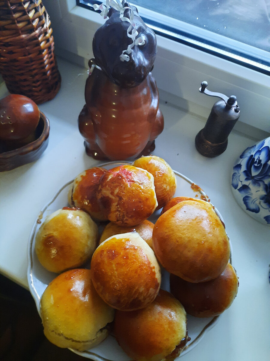 В моей семье любят сладкие булочки:) Будем печь! Всё как всегда - готовить просто,кушать вкусно)! Нам понадобится: Мука-500-550гр Молоко-250мл Сахар-3 ст.л Яйцо-1шт Дрожжи-11гр Растительное масло-50гр Ванилин -по вкусу Соль-1ч.л Начинаем готовить: В теплом молоке растворяем дрожжи сахар,добавляем яйцо,соль,ванилин и растительное масло и все хорошо перемешиваем. Добавляем муку и замешиваем тесто. Даем тесту подойти(тесто должно увеличиться в 2 раза) ( В тесто ,при желании,можно добавить молотые грецкие орехи) Формируем булочки: делим тесто на равные части ,слегка раскатываем и в середину кладем варёную сгущёнку,защипываем края и катаем колобок. Смазываем булочки (1 желток+1ст.л молока) В разогретую до 180°С духовку ставим противень с булочками и выпекаем приблизительно 30 мин. Всё как всегда просто и вкусно😋 Приятного чаепития:)