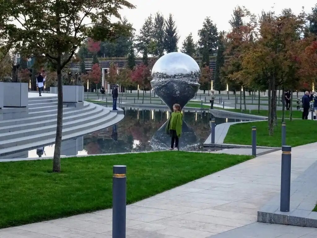Сегодня покажу ещё одну не совсем обычную скульптуру из нашего знаменитого парка, которая называется "Геолокация". Создана она арт-группой Recycle ещё в 2019 году по заказу Сергея Галицкого. Это один из нескольких объектов, заказанных бизнесменом у художников Андрея Блохина и Егора Кузнецова, и первый объект Recycle в Краснодаре. Её бывает видно ещё издалека, эта как бы "перевёрнутая капля" сразу привлекает к себе Расположена она в воде и оттого кажется ещё более фантастической. Её авторы в 2010 году получили премию Кандинского в номинации «Молодой художник» за проект Reverse. Сегодня Recycle Group являются постоянными участниками многих российских и зарубежных выставок произведений искусства. С ней многие хотят фотографироваться, и это не удивительно. Сделана эта огромная "капля" из нержавеющей стали. Сама скульптура отождествляет долю секунды, застывшую в металле. А сам объект, отлитый из стали с изображением панорамы 360 градусов, снятой именно с той точки, где он и установлен. Прич