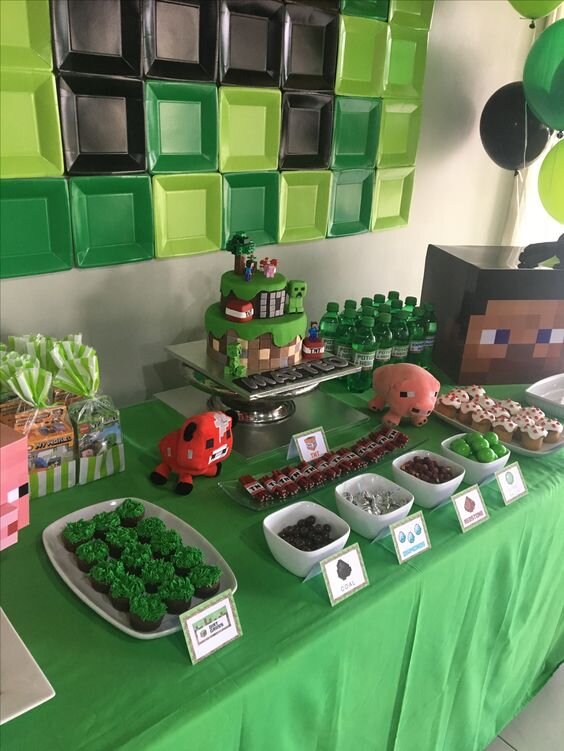 С рождения детей мы полюбили устраивать дома тематические дни рождения. В этом году сын запланировал праздник в стиле Майнкрафт. Я собрала в эту статью, то, что мне понадобилось: • Фотозона • Торт Украшения на стол Нашла несколько фото, для вдохновения. Как можно оформить одноразовые стаканчики для детей Лица для распечатки: Стаканчики для поп-корна: Ещё такой варинат украшения стола. Зелёные квадратные салатницы для угощений, а на них наклеены квадратные элементы - это глаза и рты. И вот такие картинки для распечатки Ими можно украсить стаканчики, салатницы или нарезать как флажки. Большие лица в галерее: Флажки Колпачки или стаканчики для угощения Файл для распечатки: Цифры как декор Можно распечатать и наклеить на бумажные стаканчики или добавить цифру к флажкам в гирлянду (листайте галерею, чтобы посмотреть все цифры): Подарочные пакеты для гостей В некоторых странах принято дарить небольшие подарочки детям-гостям и оформлять их в стиле праздника. На этих пакетах просто