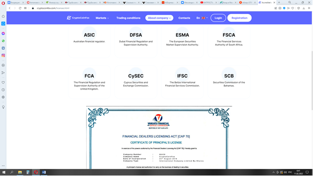 В поисках конторы, работающей с криптовалютой, попал на CryptoCoinFox. Теперь расскажу пару слов и свои впечатления о компании. Контактные данные: · Е-mail: support@cryptocoinfox.com; · Международный телефон: +41(0)557800533; · Адрес офиса: Incrocio Renato 030 0488 Winterthur. На странице с лицензиями админы не поскупились, здесь аккредитации Австралии, Кипра, Африки, Багам, Белиза и еще нескольких стран. Впрочем, ни одна из них не имеет юридической силы в России. Ниже картинка с лицензионным соглашением Республики Вануату. Мало того, что в РФ – это просто бумажка, но и на сайте это лишь изображение, которое можно подделать за считанные минуты в фотошопе и даже в пеинте при желании. Проверил расположение конторы на карте, но по данному адресу высвечиваются только апартаменты. По всей видимости это фейковые данные. Все эти несостыковки вызывают сомнения и отбивают желание сотрудничать с организацией. А если информация не кажется убедительной, просто посмотрите на отзывы в сети. Деньг