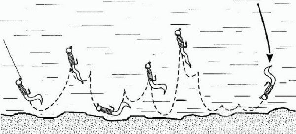 Классическая джиговая Оборот катушки - пауза, два оборота катушки - пауза, три оборота катушки - пауза. Варьировать эту проводку можно скоростью ручки катушки. Лучшая вариация - это проводки, когда делается первый оборот резкий, а дальше три оборота медленных. ⃣ Двойной подброс Эта проводка достаточно сложная. Нужно сделать два подброса и одновременно убирать слабину катушкой. Поначалу это немного трудно, но на окуня она является одной из наиболее эффективных. В этой проводке есть нюанс, который заключается в силе рывка. Сильным или слабым его делать - нужно экспериментировать, исходя из условий ловли. ⃣ Рывковая В этой проводке сначала делаются рывки, и только потом слабина убирается катушкой. Делается две или четыре небольшие серии рывков. Например, два сильных или четыре несильных рывка на том расстоянии, которое приманка проходит за оборот ручки катушки. Проводка хорошо служит для облова локальных мест. ⃣ Волочение приманки по дну Эта проводка хорошо работает по песчаному ил