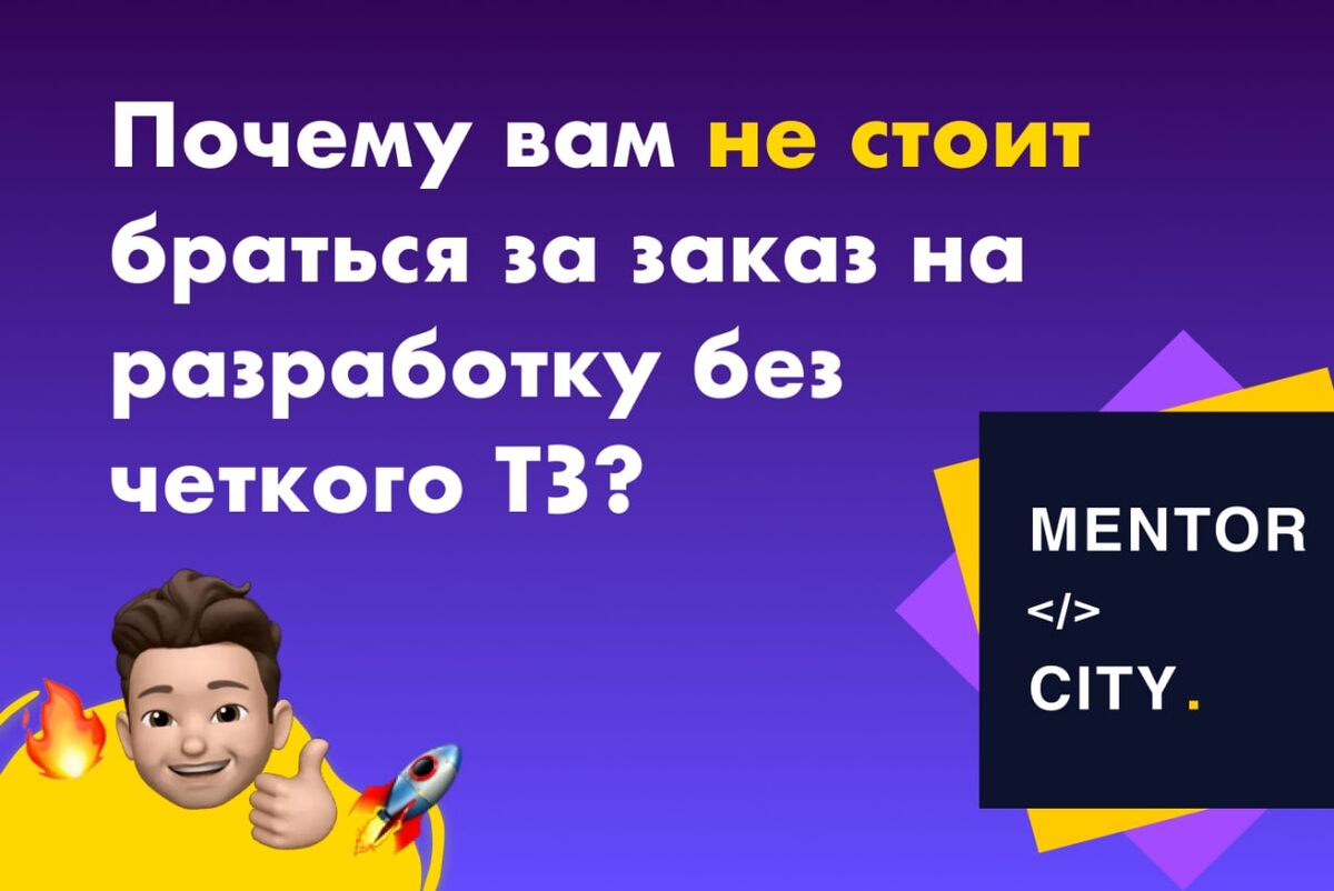 Опытный разработчик знает, что в большинстве случаев, заказчик сам до конца не понимает, чего хочет. Отсюда возникают проблемы: — приходится додумывать решения и структуру на ходу; — иногда заказчик требует так много доработок/переделываний, что их обсуждение и выполнение может занять больше времени, чем вся предыдущая разработка (при этом, обычно заказчик не считает, что должен доплачивать за это); — заказчик не видит, насколько большой объем работ вам предстоит проделать,что может вызвать разногласия по оплате. Чаще всего у заказчика нет работников, которые смогли бы написать грамотное ТЗ. На этот случай, составьте собственный бриф на разработку, который вполне себе может заменить ТЗ. А как это сделать лучше всего — мы разберем в следующих постах. --- ➤➤ Изучите тему подробнее с наставником mentor-city.com ➤➤ Задавайте свои вопросы в комментариях ⬇️