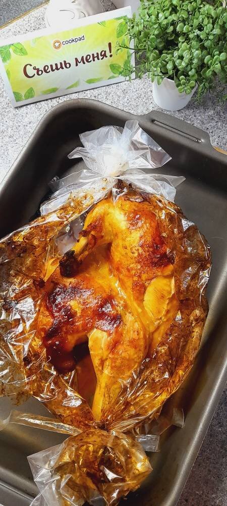 #игры При использовании кулинарного рукава курица получается особенно нежной. А медово-горчичный маринад и розмарин даёт ей интересный, пикантный вкус. В рукаве курица особенно набирает аромат маринада. И ещё, благодаря рукаву нет никаких жирных брызгов в духовке - это очень удобно. Ингредиенты: Курица полутушка , Соевый соус, Горчица, Мед, Розмарин, Соль, перец чёрный молотый, Чеснок, Сок лимона Способ приготовления: Курицу разрезать пополам, промыть, обсушить бумажным полотенцем. Приготовим маринад для курицы. Берём мед, горчицу, соевый соус. Перемешиваем. Измельчаем чеснок и добавляем к маринаду. Добавляем сок лимона. Перемешиваем. Добавляем соль, перец и розмарин. Маринад тщательно перемешиваем до полного объединения всех ингредиентов. Тщательно промазываем курицу. Оставляем мариноваться минимум на 30 минут. Периодически переворачивая. Кладём в рукав. Хорошо завязываем с двух сторон. Делаем проколы. И отправляем запекаться, при температуре 180-200° около 45-60 мин. За 10 мин до гот