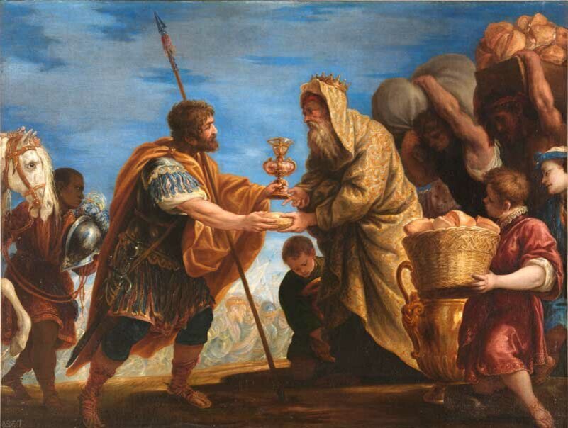 "Когда он (Авраам) возвращался после поражения Кедорлаомера и царей, бывших с ним, царь Содомский вышел ему навстречу в долину Шаве, что ныне долина царская; и Мелхиседек, царь Салимский, вынес хлеб и вино, — он был священник Бога Всевышнего, — и благословил его, и сказал: благословен Аврам от Бога Всевышнего, Владыки неба и земли; и благословен Бог Всевышний, Который предал врагов твоих в руки твои. Аврам дал ему десятую часть из всего." Бытие 14:17-20