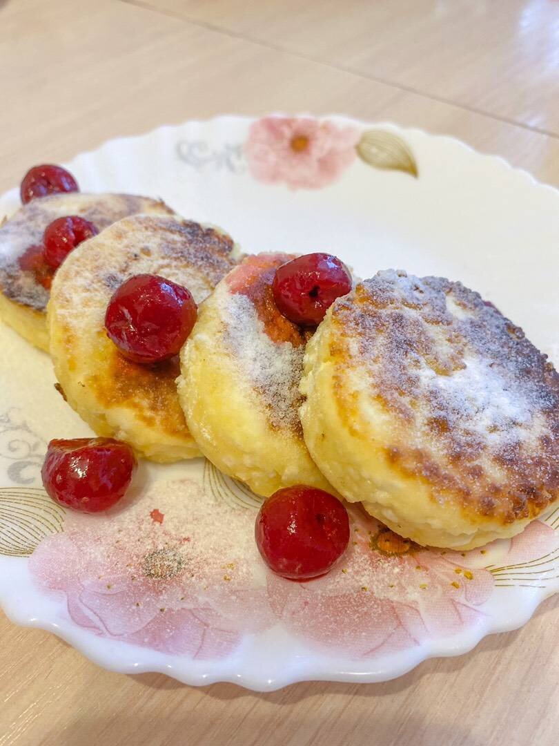 Обратите пожалуйста внимание ,что количество манки в данном рецепте зависит от влажности творога. Приятного аппетита и вкусных сырничков! Ингредиенты: творога, сахара, яйцо, манной крупы, ванильного сахара, муки (для формирования сырников) Способ приготовления: Подготавливаем все ингредиенты. Творог кладём в миску, добавляем яйцо, манную крупу, сахар и ванильный сахар и перемешиваем: готовая творожная масса для сырников должна быть сухой и хорошо держать форму, если сжать ее в ладони. При необходимости добавляем ещё манную крупу. Оставляем массу на 15 минут, чтобы манка набухла. Рабочую поверхность слегка посыпаем мукой. Разделяем творожную массу на одинаковые кусочки и подкатываем их в шарики. При помощи большого ножа или стакана придаём сырникам форму. Сформированные сырники, желательно, убрать на 10-15 минут в морозилку, чтобы они слегка схватились и еще лучше держали форму. В сковороде разогреваем растительное масло. Выкладываем сырники и жарим с двух сторон, на медленном огне, до