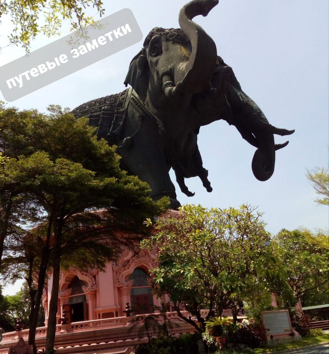 Я тут с просветительской информацией сразу уже объемно выступлю, чтобы дальше на нее сильно не отвлекаться. Музей Эраван считается музеем истории тайской религии и находится внутри гигантской статуи слона о трех головах. Головы символизируют 33 небесных сферы, а сам музей - вселенную и три основных мировых религии — индуизм, буддизм и христианство.