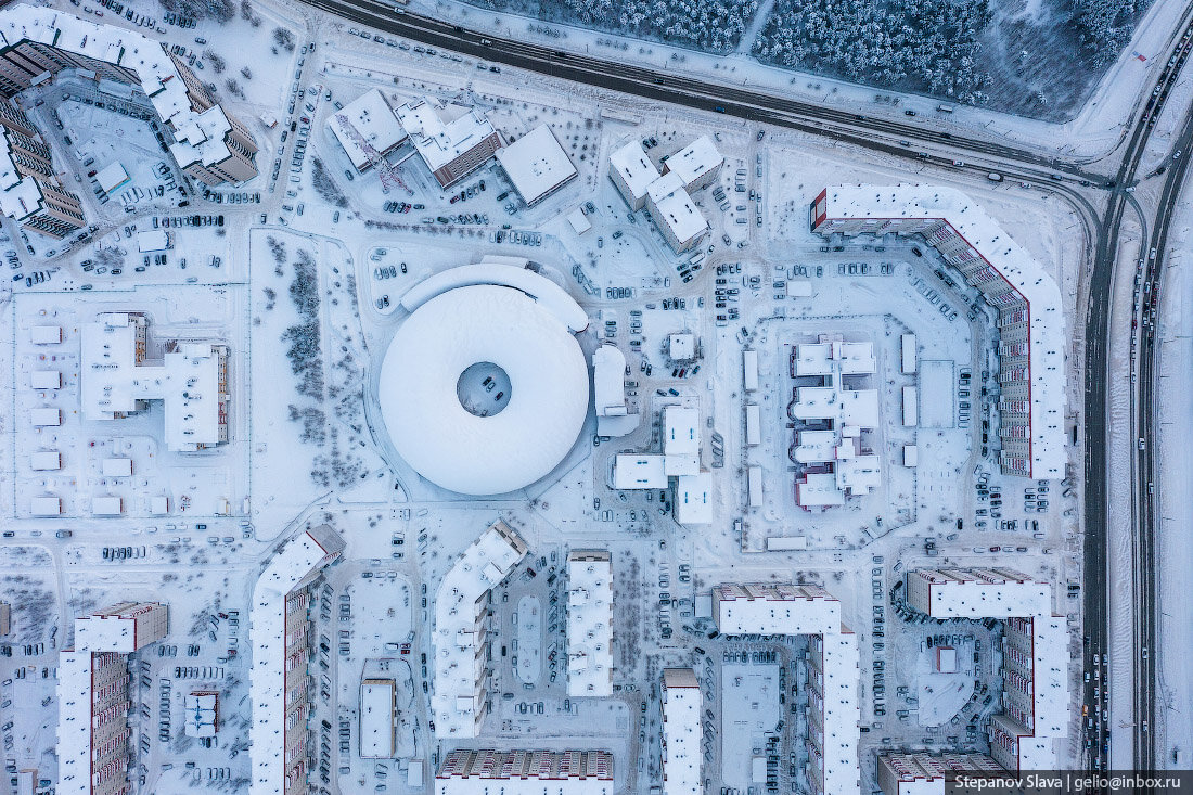 На самом деле это 3-этажное здание гаражного кооператива «Вираж» на улице Флегонта Показаньева.