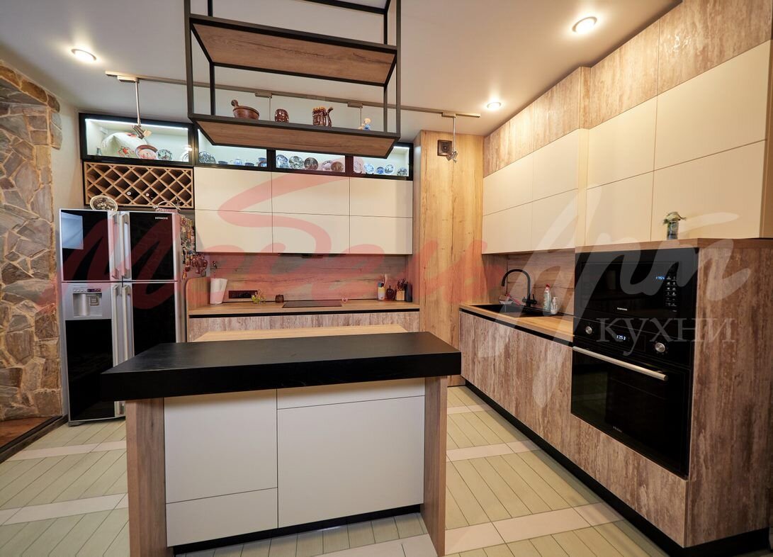 · На острове иногда может быть соединено несколько вариантов, дизайном. Например, он может делиться пополам вдоль: на стойку и столешницу. Также он может быть разделен и поперек: раковина, барная стойка и т.д.