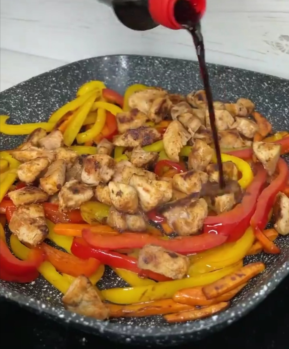 С чего можно начать? А начнём мы пожалуй с ингредиентов: P. S. Все ингредиенты при приготовлении фунчозы, ВОК режут однообразно, соломкой. Фунчозу ломать не стоит перед заваркой🤨 Вместо соевого можете использовать специальный соус, например кисло-сладкий, с ним даже получится вкуснее. Итак, начнем: 1) Нарежем куриное филе и отправим в сковороду с растительным маслом для обжарки, при этом присыпав паприкой. 2) Красный и жёлтый перец, морковь рубим на ломтики. Обжариваем сначала на сильном огне МОРКОВЬ пару минут, затем перец и томим под крышкой минут 5. 3) Добавляем обжаренную курицу в овощи и все это заливаем соевым соусом, сбавляем огонь на средний. 4) Фунчоза оставляем на 3 минуты в кипятке для заварки. Следите за временем, иначе превратится в доширак. Выключаем плиту, вынимаем фунчозу и отправляем на сковороду в овощи, чтобы она пропиталась в соусе. При подаче посыпаем кунжутом. Приятного аппетита! Это вкусно 😋