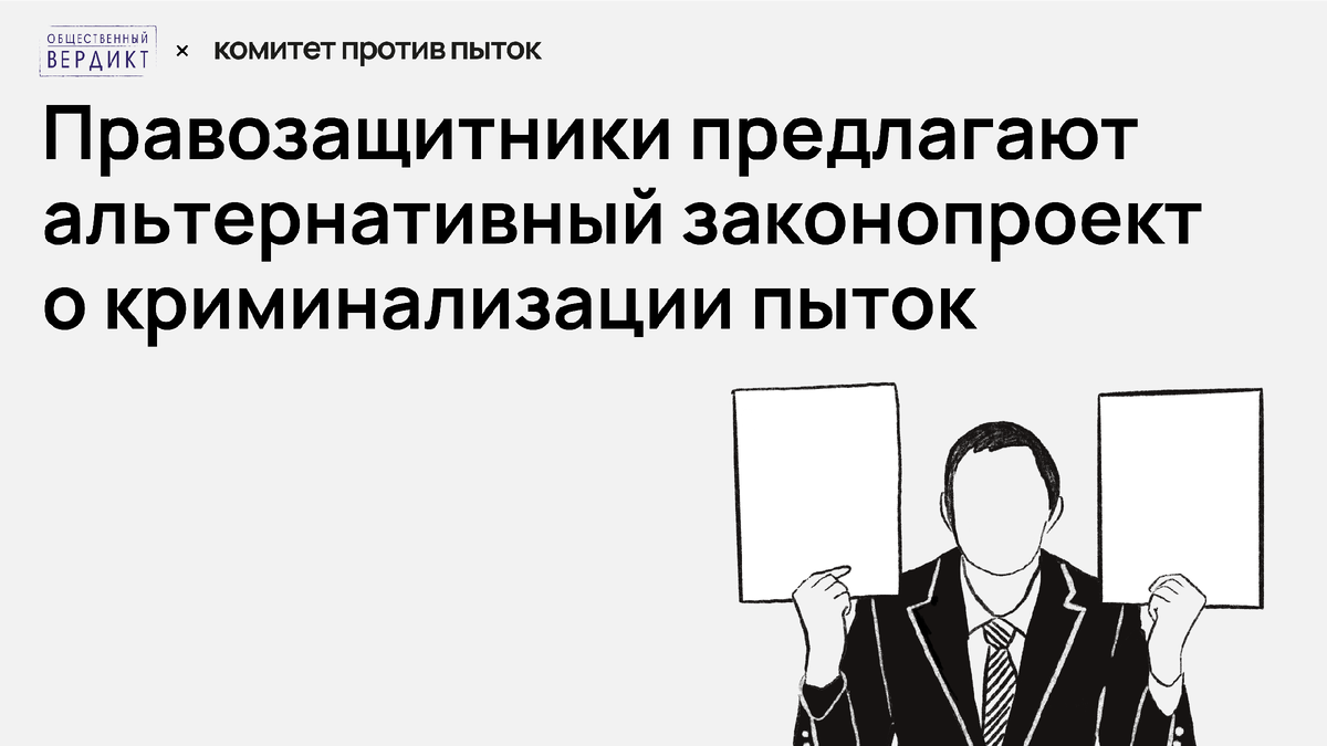 Мы просим СМИ, общественных деятелей, представителей власти, НКО и активистов помочь с распространением законопроекта, созданного «Общественным вердиктом» и Комитетом против пыток